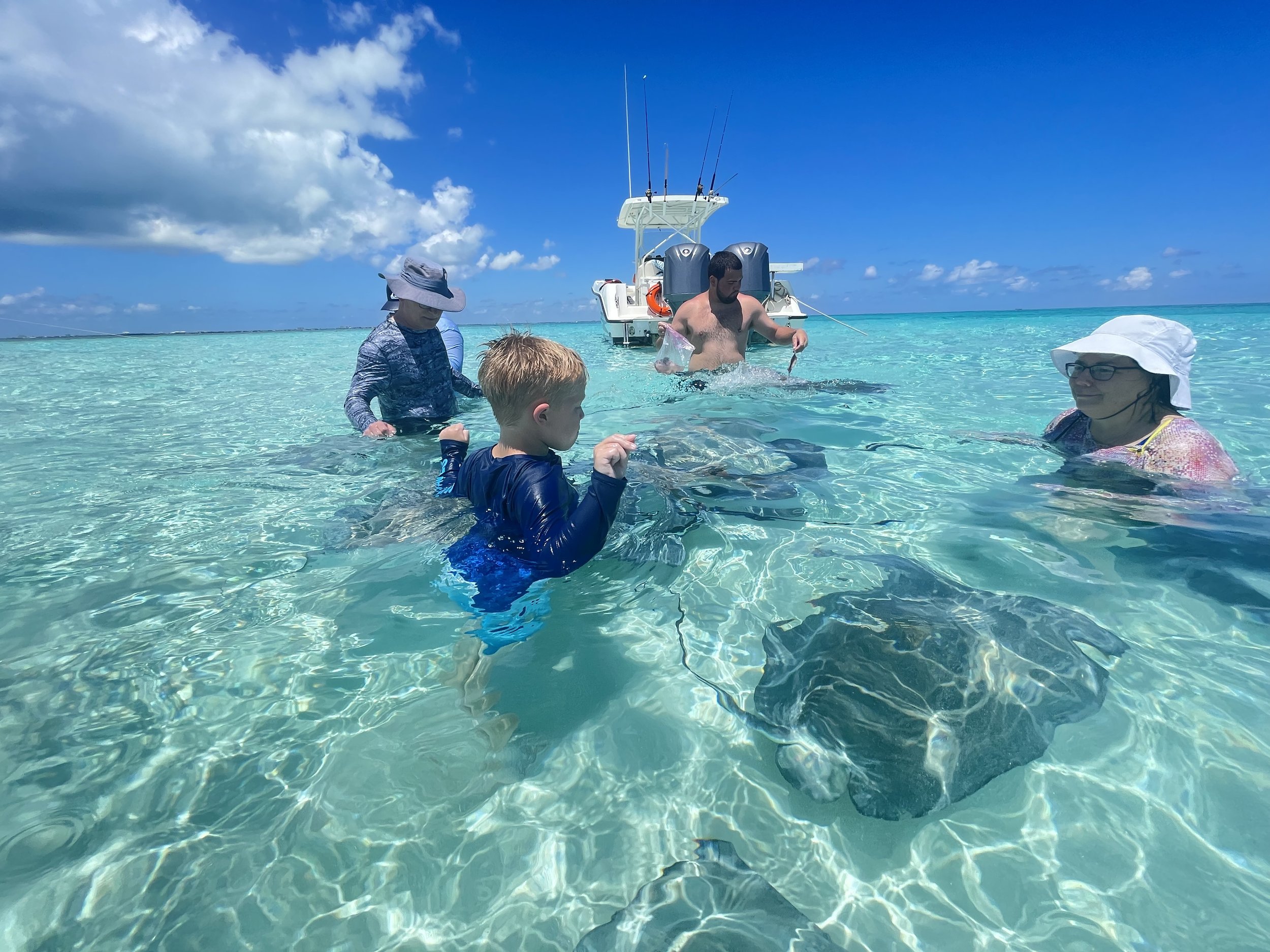 Our crew will guide you every step of the way, showing you how to move comfortably in the water and how to feed and hold the rays with confidence. Your captain and mate will join you in the water to help ease you into the experience — and capture a few amazing photos along the way.
